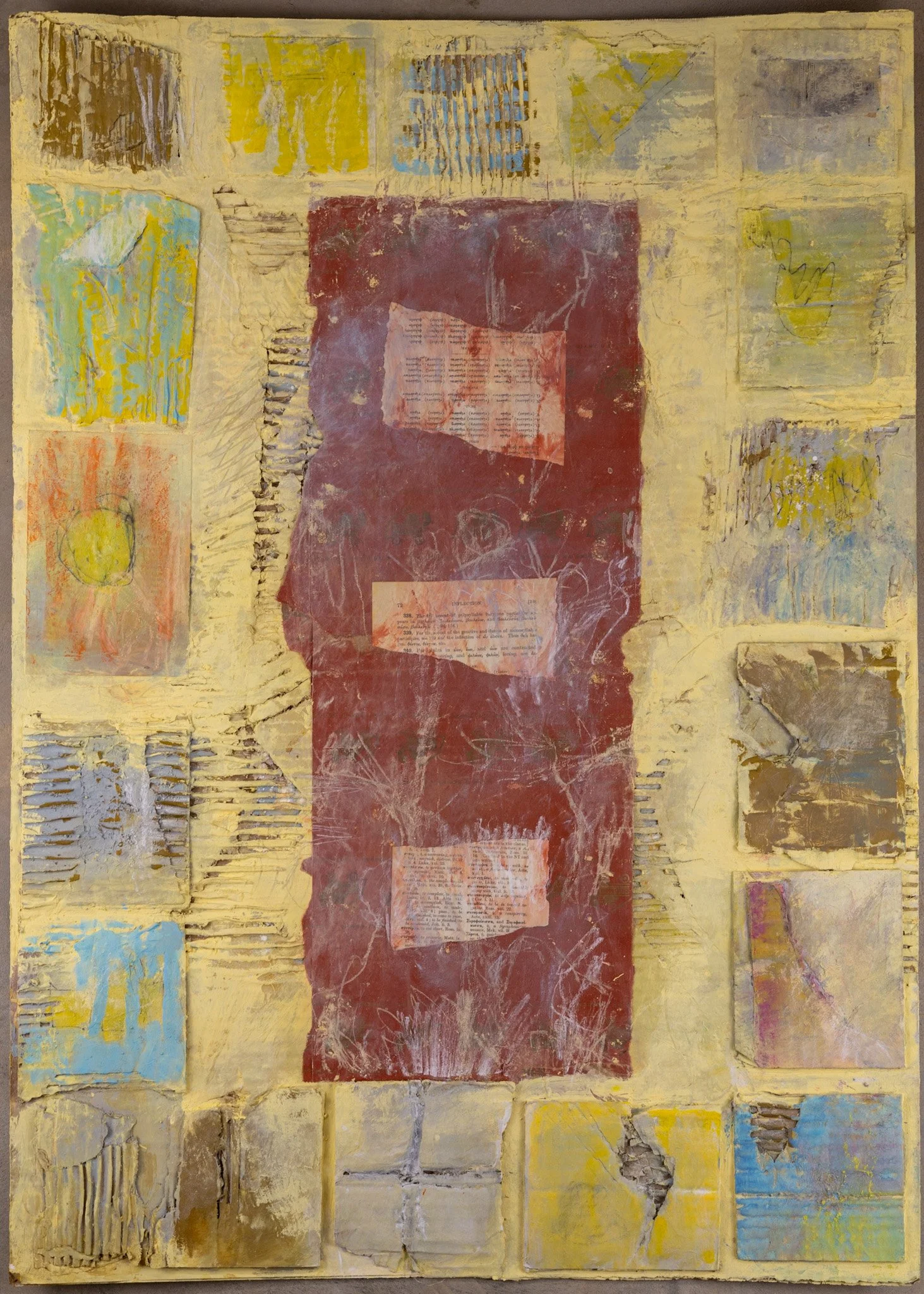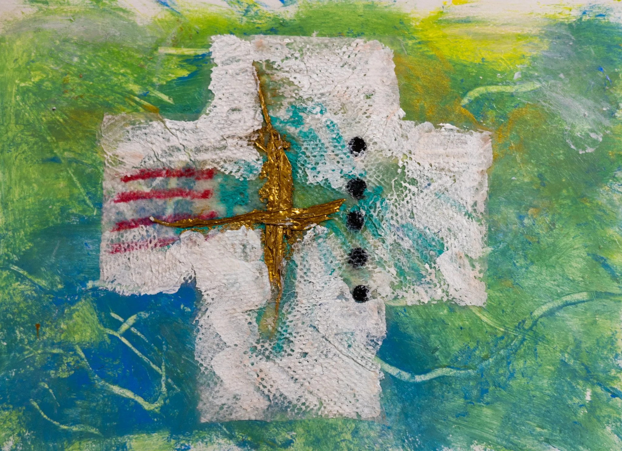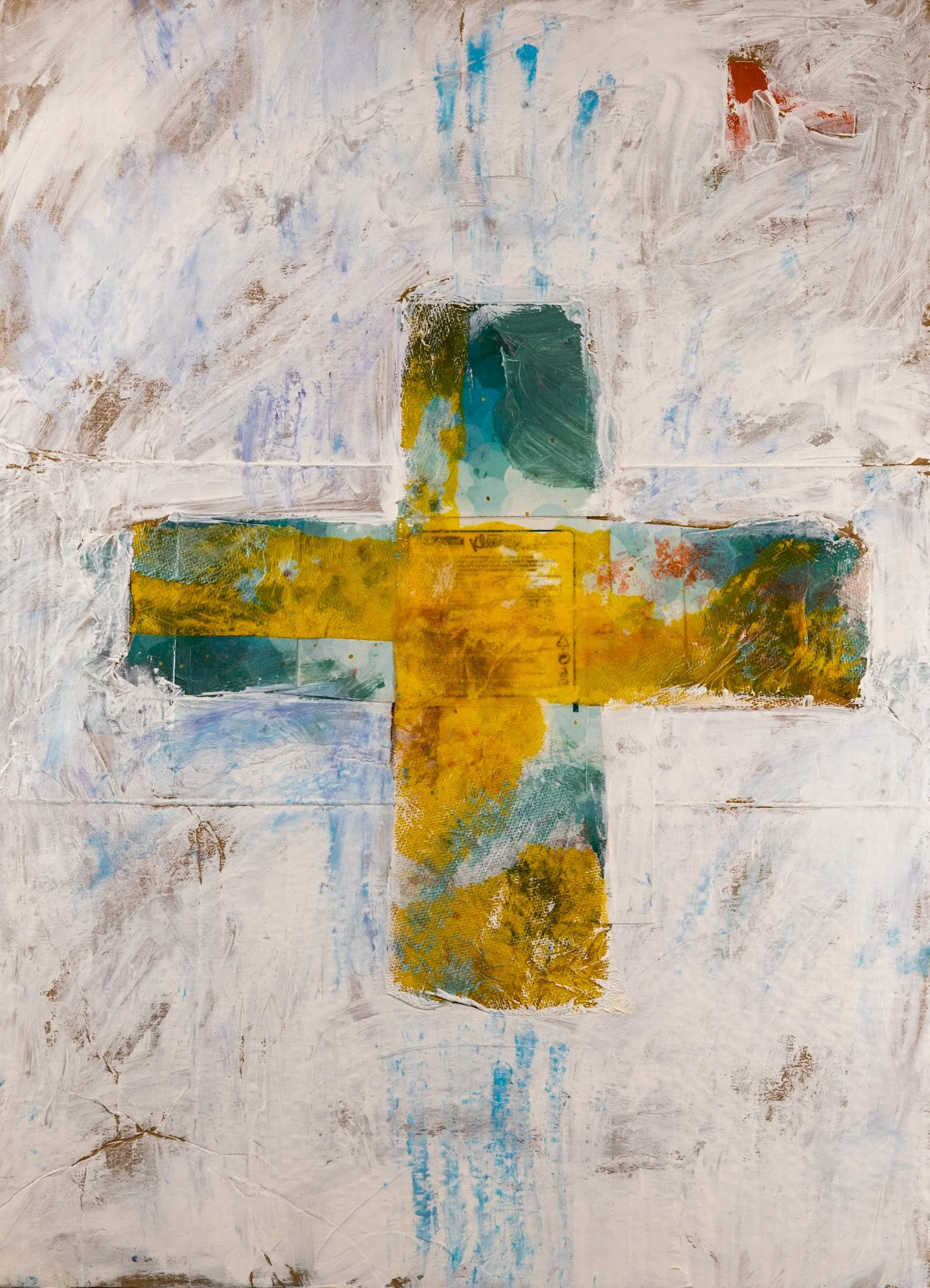 a series in which cardboard, acrylic, and found objects become signs of hope.